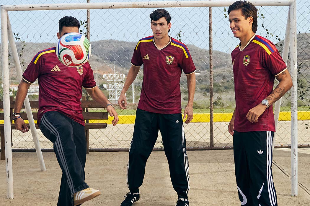 El concepto de la nueva piel Vinotinto, inspirado en las imponentes formaciones geológicas de los tepuyes, ha generado un impacto inmenso. Estas estructuras milenarias simbolizan origen, permanencia y conexión con nuestra tierra. El patrón gráfico en relieve que recorre la camiseta, como una abstracción de los tepuyes y un homenaje a las pinturas corporales de nuestros pueblos originarios, es un trabajo de diseño que enaltece nuestra cultura y raíces. Además, el detalle de las tres icónicas franjas de Adidas en amarillo, azul y rojo es un emotivo homenaje a nuestra bandera nacional.